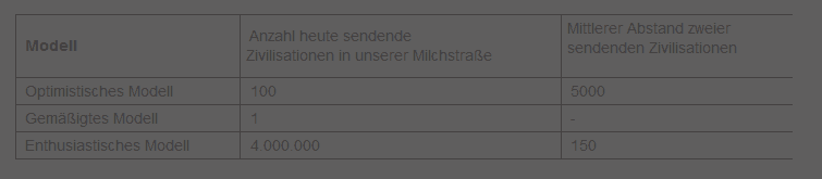 N bzw. A = Anzahl technischer Zivilisationen in unserer Milchstraße, die Radiosignale empfangen können